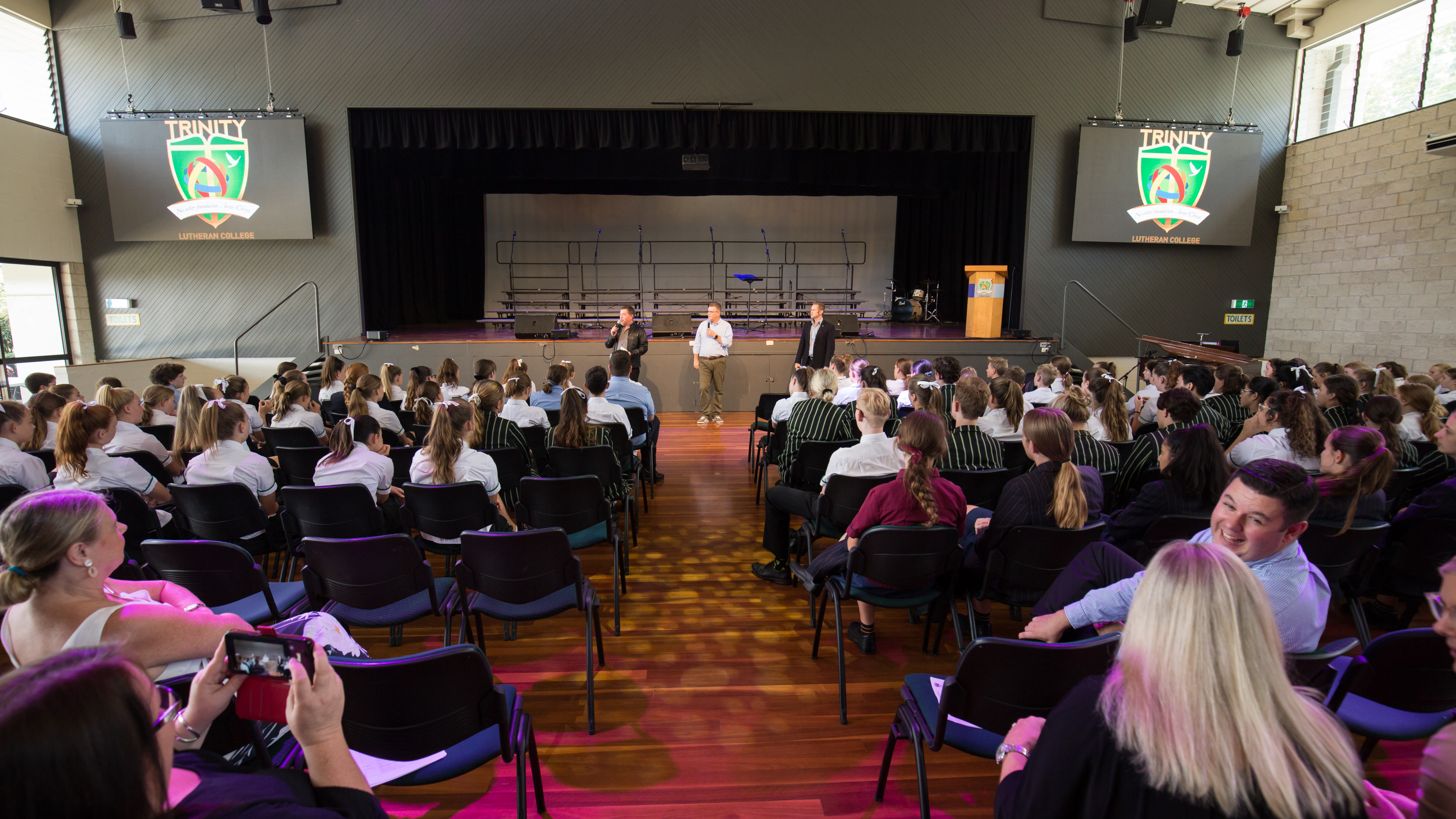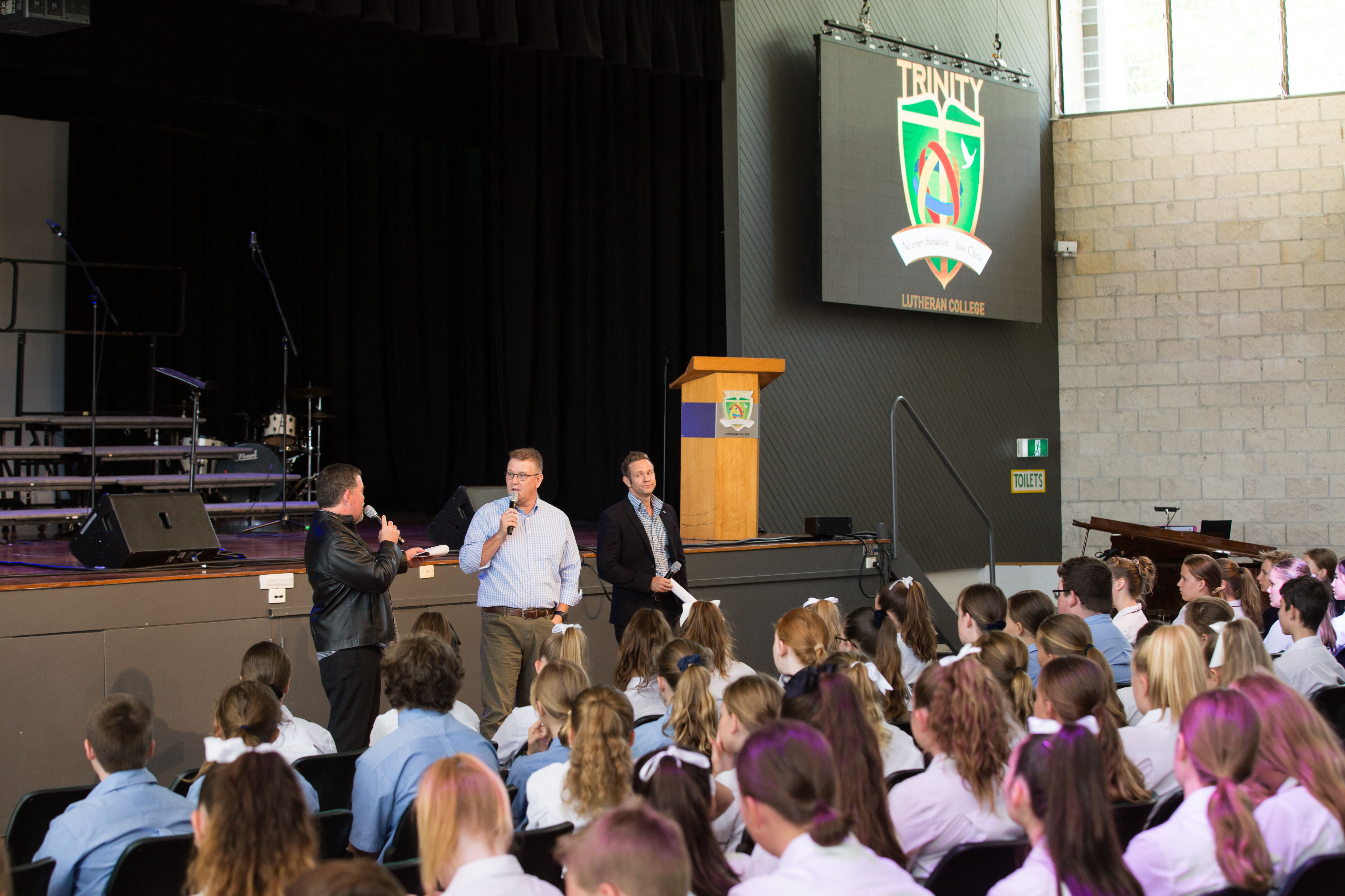Last night, it was Trinity’s turn to host this special event which unites all Lutheran students from Trinity, LORDS, St Andrews & Faith Lutheran College, in their passion for singing and, this year, students shared this unique and rewarding experience with the talented Tenor trio “Tenori”, workshopping and performing with them. These 3 tenors all met when touring the world with ‘The Ten Tenors’ and in recent years started their own highly successful ensemble ‘Tenori’. Our collective students had the pleasure of participating in a Q&A with these industry professionals, gaining invaluable advice about the industry, about singing and about following your passion in life. As part of this, our students were treated to a special performance by Tenori. The day then followed with 3 hours of vocal workshops with the tenors, learning 3 stunning numbers to perform with them as part of the finale in the concert. The students were thrilled to spend the day developing vocal skills, being inspired by these incredible singers and having the chance to make new friends along the way!