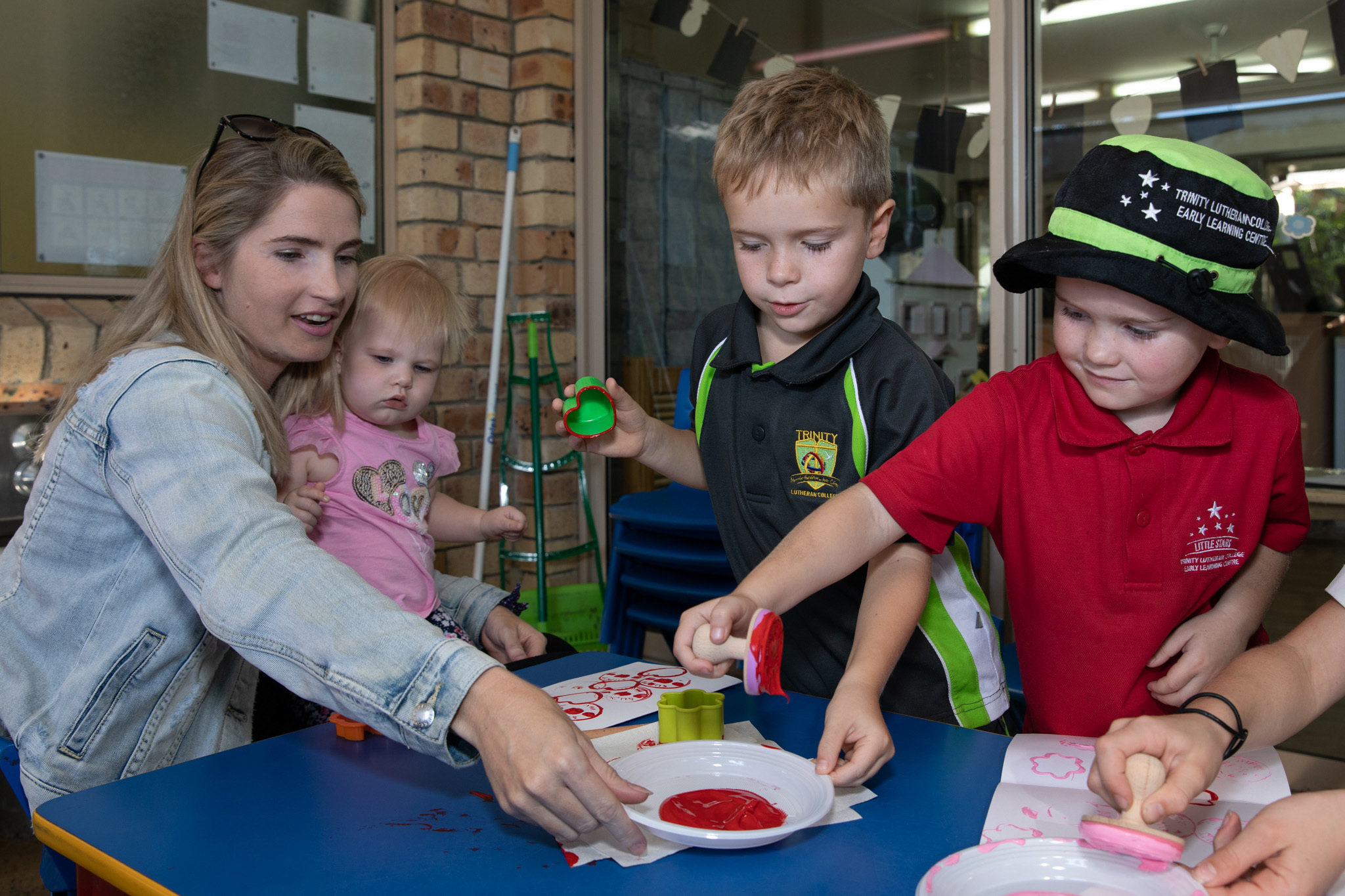 The children had also been busy planning and making special gifts to give to their mothers. The Junior Kindergarten children took time to plant and water seeds in a decorated pot and their care was rewarded with all seeds having sprouted prior to the day. Kindergarten One painted original designs and patterns onto special mugs and these were wrapped to present to their mothers. Kindergarten Two children thoughtfully considered their mothers and drew a beautiful portrait of Mum that was placed in a frame and displayed in the room, before being taken home. The joy of making gifts, thinking of others and presenting them to someone else is an important learning for young children.