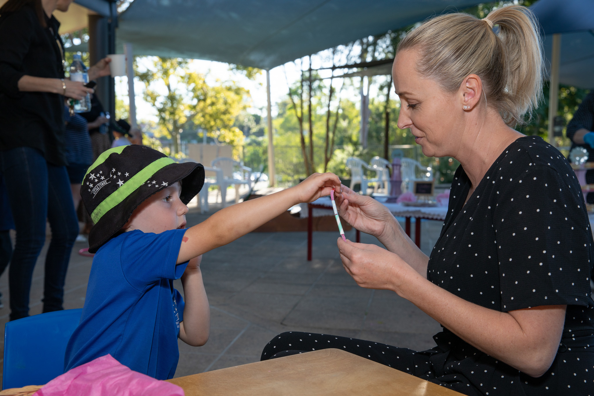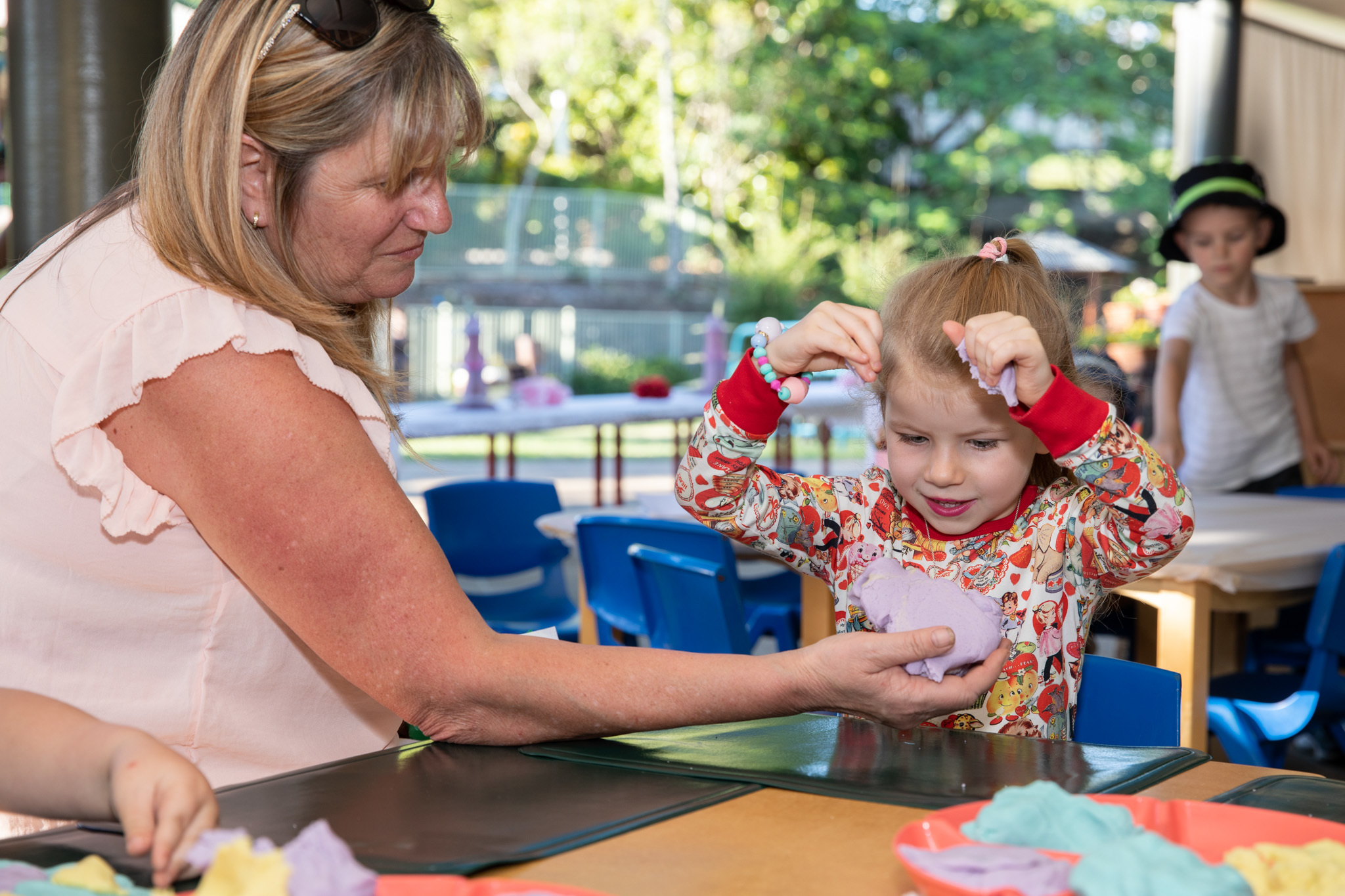 The afternoon offered an opportunity for families to undertake some activities together, such as threading bracelets, making cards, moulding with various colours of playdough and painting. Families then socialised and enjoyed the scrumptious afternoon tea provided by the children.
