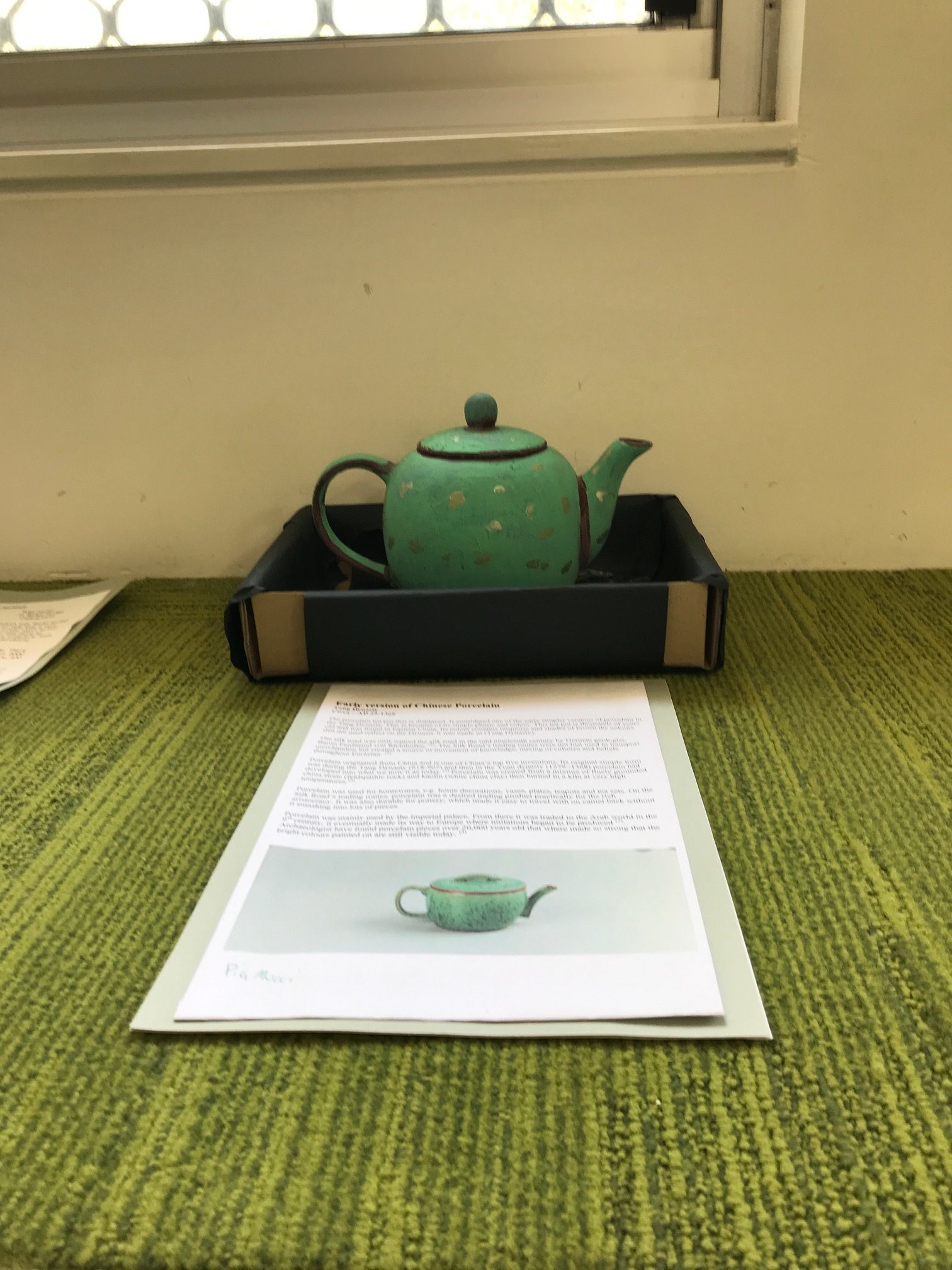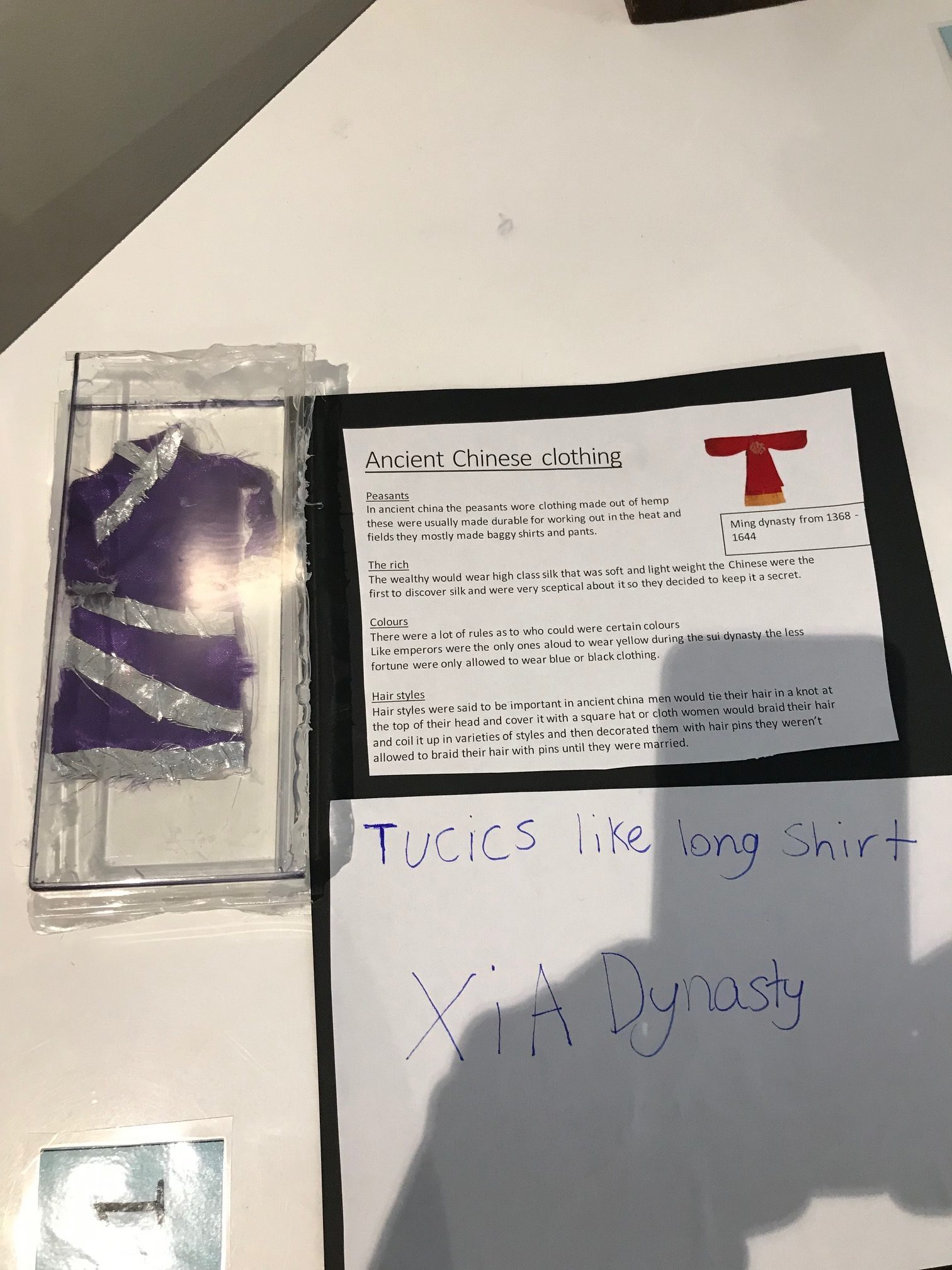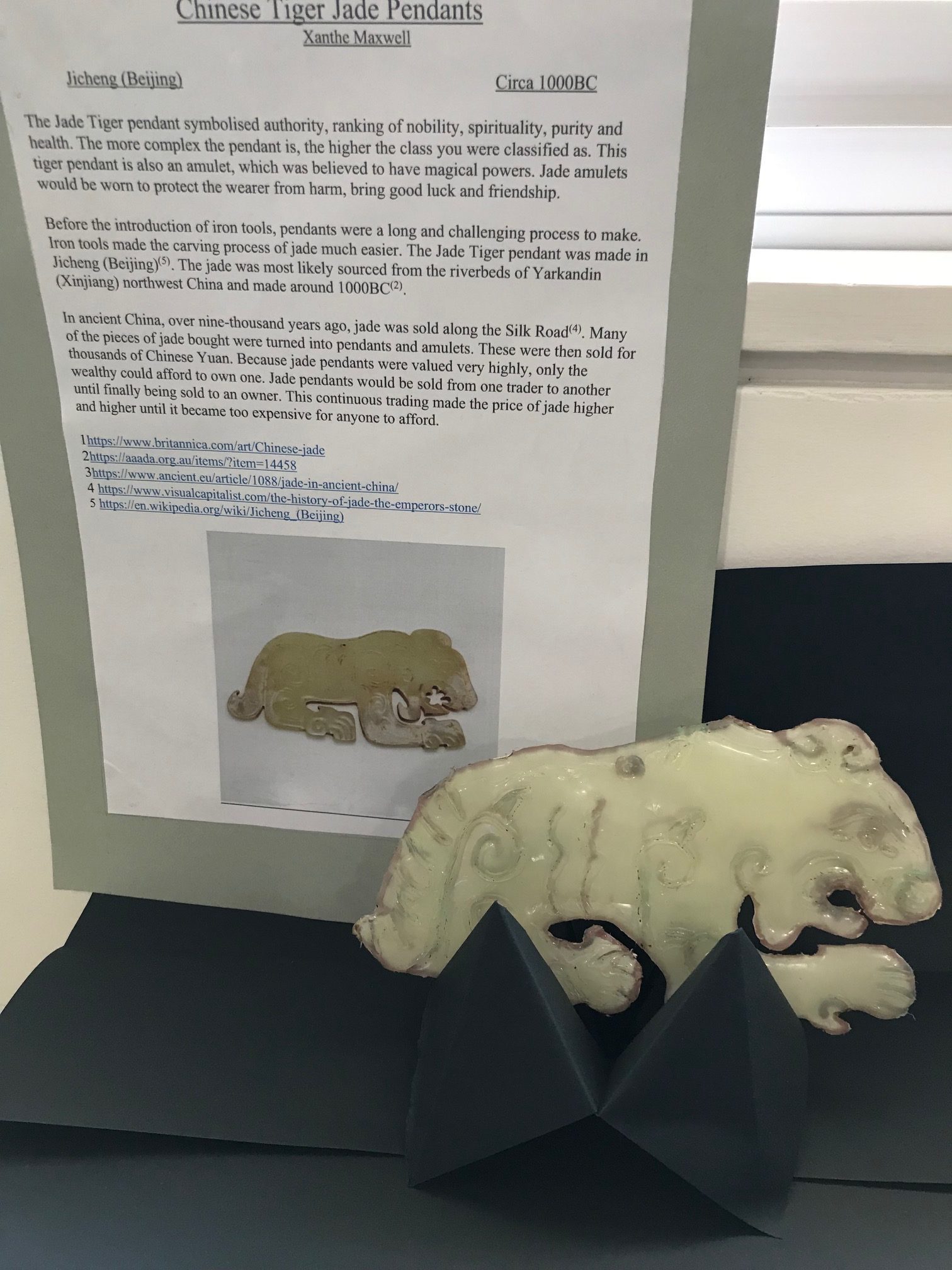 For Humanities, the students created an artefact piece that would be displayed in a museum (the classroom). The piece would have been found along the route of the silk road. The students were given choice as to what artefact they would design. A written component outlining the history of the piece was required also.