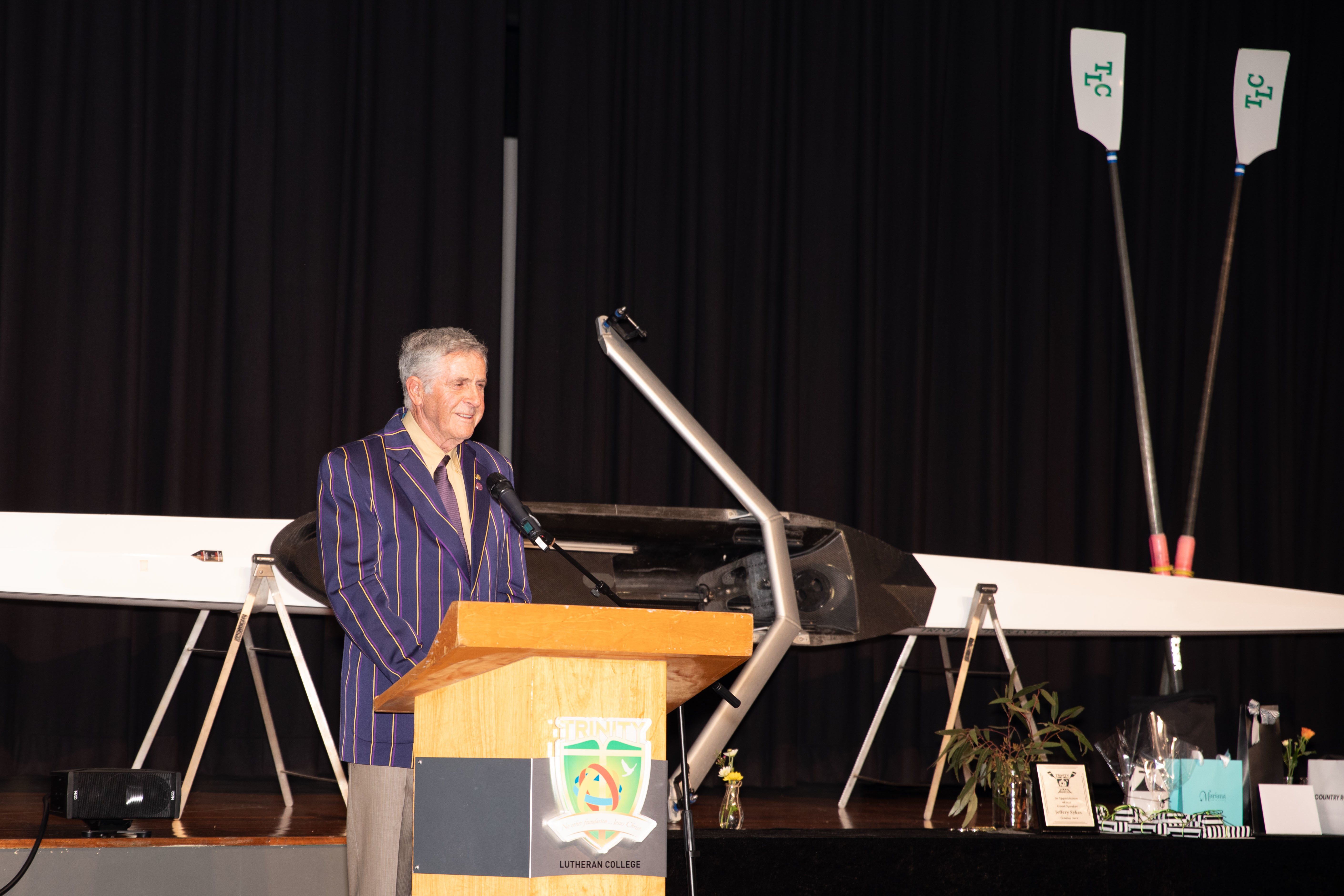 The Annual Rowing Dinner was held last Friday night at the Robert Hoff Community Hall, with all our rowers and their families celebrating the very successful 2018 rowing season. A special thank you to the Rowing Supporters Group for their tireless preparation and co-ordination of the event. In particular, Leesa Harris, Bronwyn Lind, Fred Cherrier and Stephanie Swan. We were blessed to have Australian Rowing icon Mr Jeff Sykes in attendance. His numerous rowing stories and insights provided plenty of motivation and reflection for all our aspiring rowers. Congratulations to departing Captains, Matilda and Lillian for their passionate and devoted leadership of the Trinity Rowing Program throughout 2018. Beyond this, to the graduating Year 12 rowers and their families, a sincere thank you for your excellent contribution and stewardship of the Trinity Rowing Program. You will be missed; however, the program is in good hands with many committed and devoted rowers throughout the Middle and Senior Years. Finally, thank you to Dr Wong and Mr Mason for their attendance on the night and for their support of the Trinity Rowing Program.