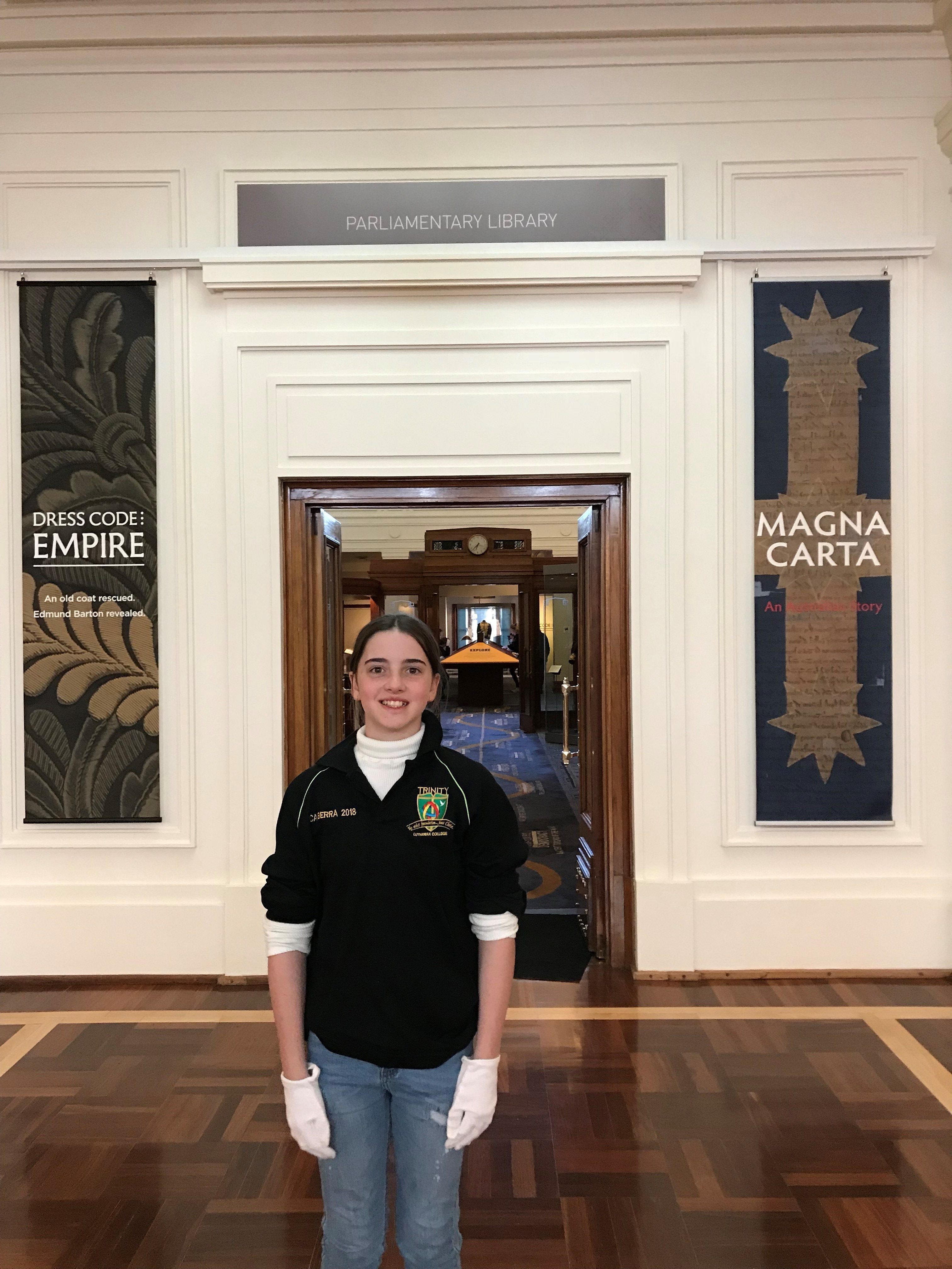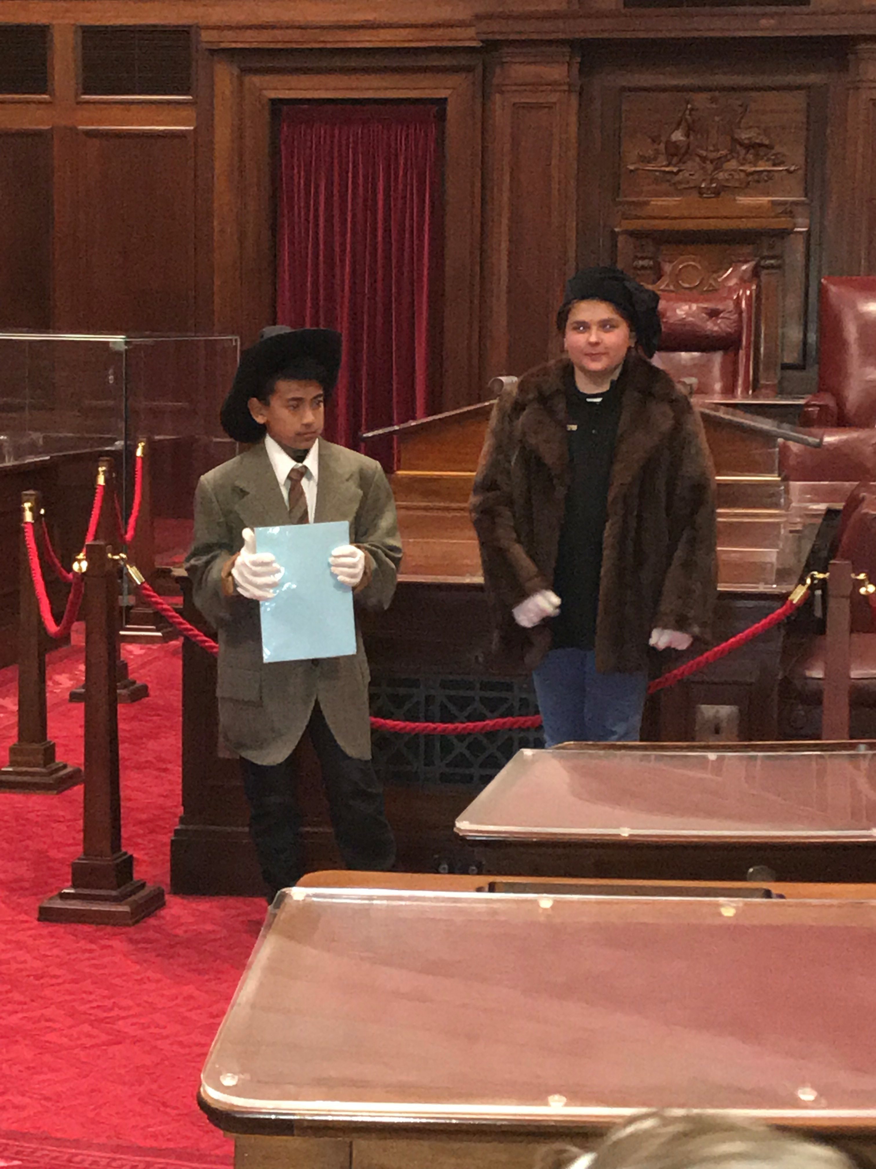 In Canberra, we had the amazing experience of visiting the Australia Parliament house, with our guide answering all our probing questions. We visited the House of Representatives (green), sitting where the reporters normally sit. It was very informative, and we learnt some fun facts. Did you know when Parliament House was built it was worth 1.1 billion dollars? We participated in a role-play, with students selected to play, the Clerk, Speaker, Prime Minister, the Leader of the Opposition and Ministers, making their own speeches and trying to convince the independent parties to come to their side. It was fun, and everyone learnt a lot. The gift shop was great, and we could buy trinkets to remember the experience. Posters, coins and many other things. I am sure everyone will remember visiting Parliament House. –by Sienna Mackenzie