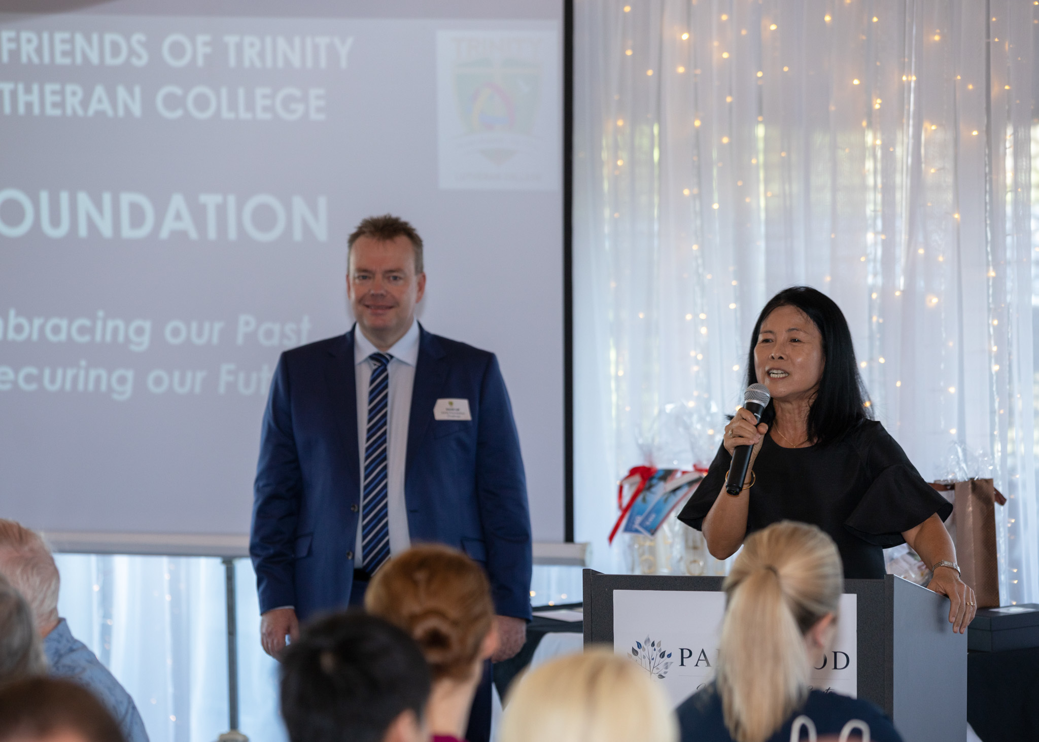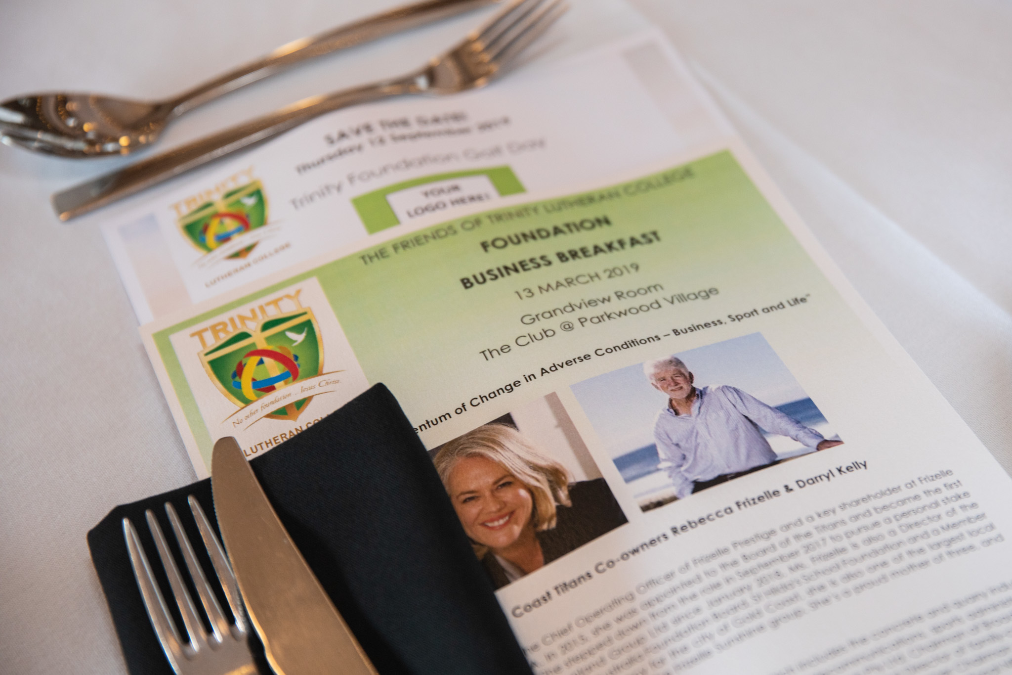 We are so appreciative of the 150 amazing supporters of Trinity who gathered together at The Club @ Parkwood Village yesterday morning for the Foundation's first, and wonderfully successful, Business Breakfast. We were privileged to listen to guest speakers Darryl Kelly and Rebecca Frizelle who are co-owners of the Gold Coast Titans in an atmosphere that was warm, welcoming and relaxed, totally in keeping with Trinity’s inimitable community culture and we hope everyone who attended enjoyed the event. A big thank-you to our sponsors Colliers International, Tyler International, Morris Medical, Greenroom Building Co, Burling Brown, Families in Focus, Captivate and Axis Optical by George & Matilda Eyecare.