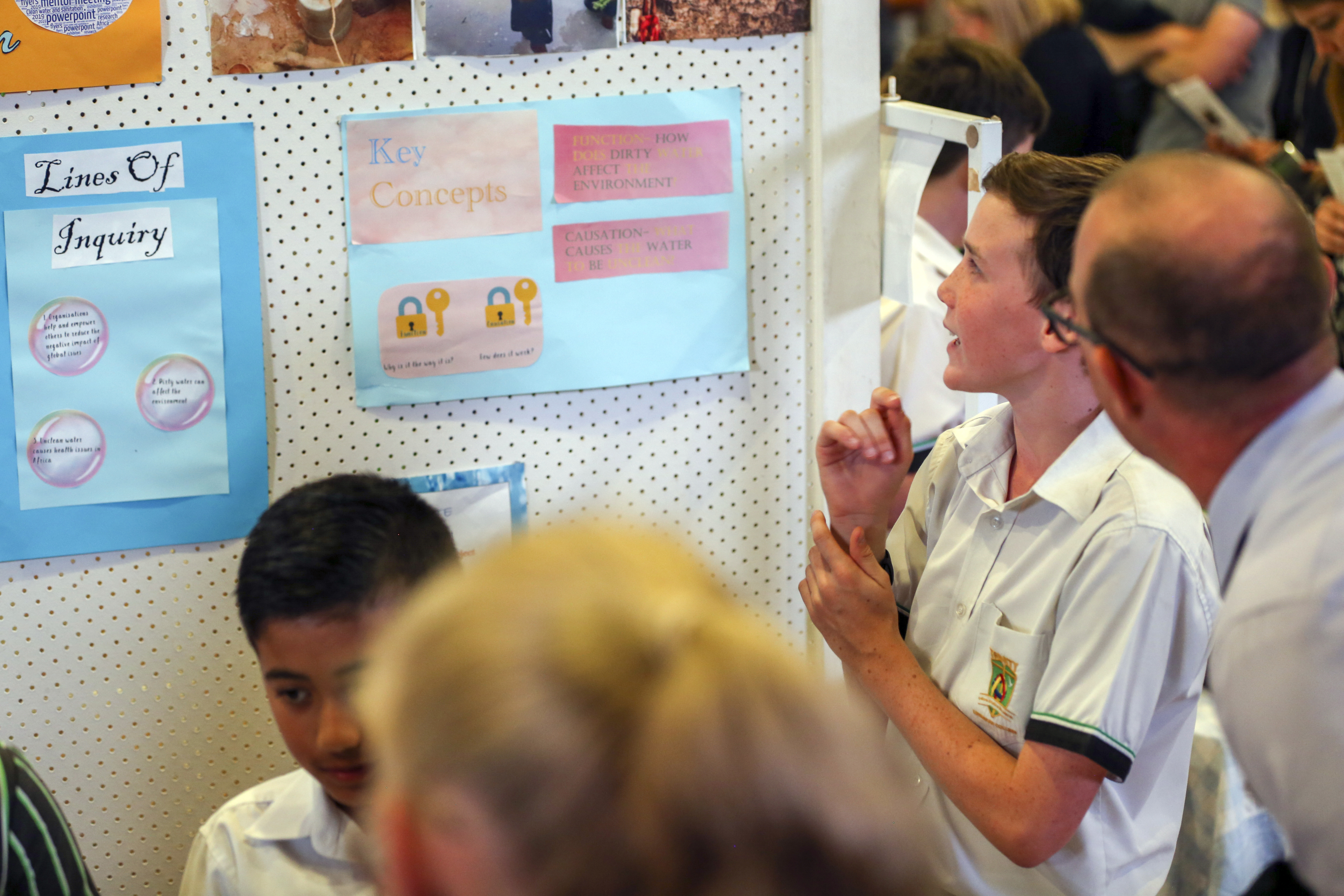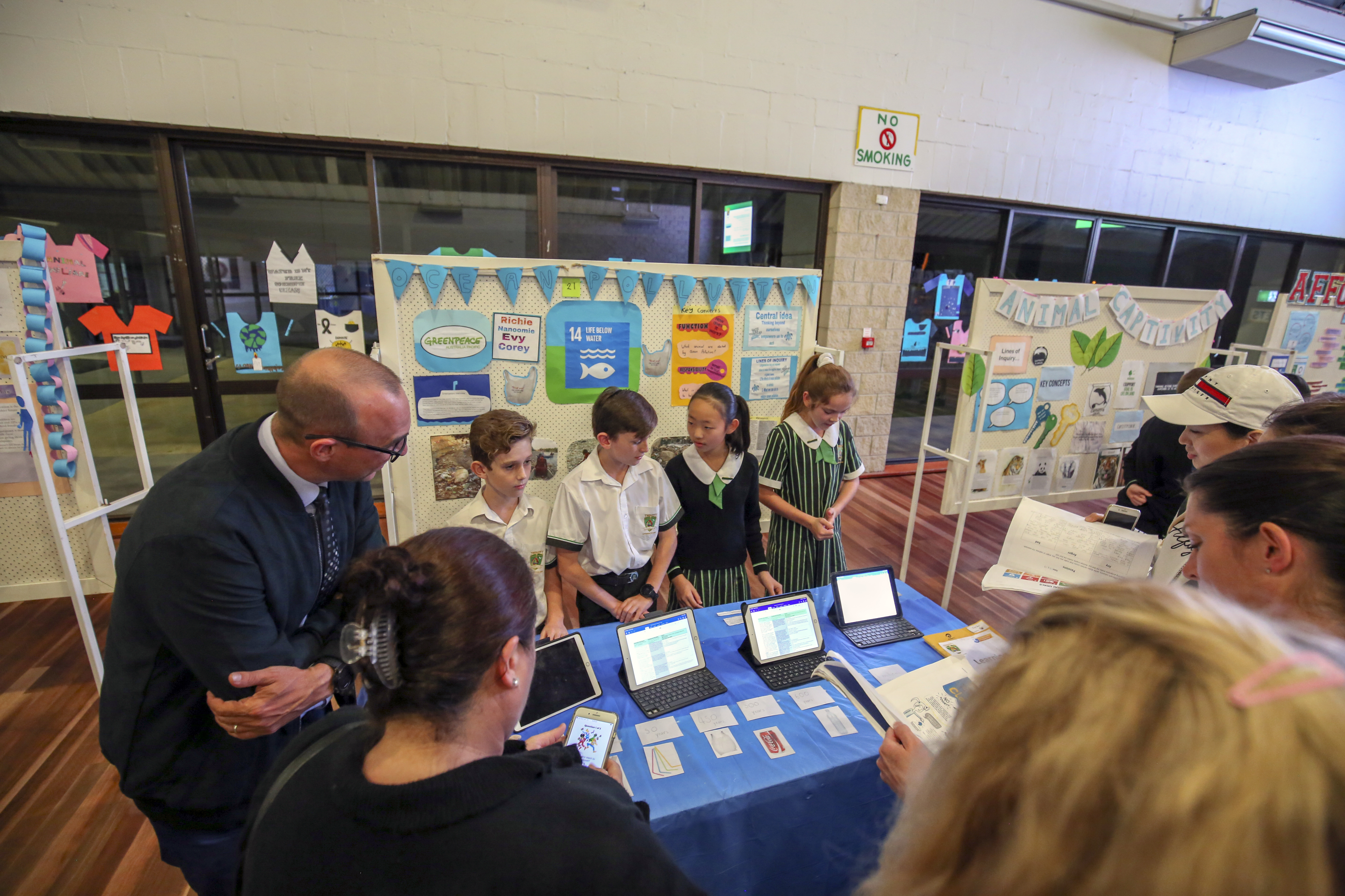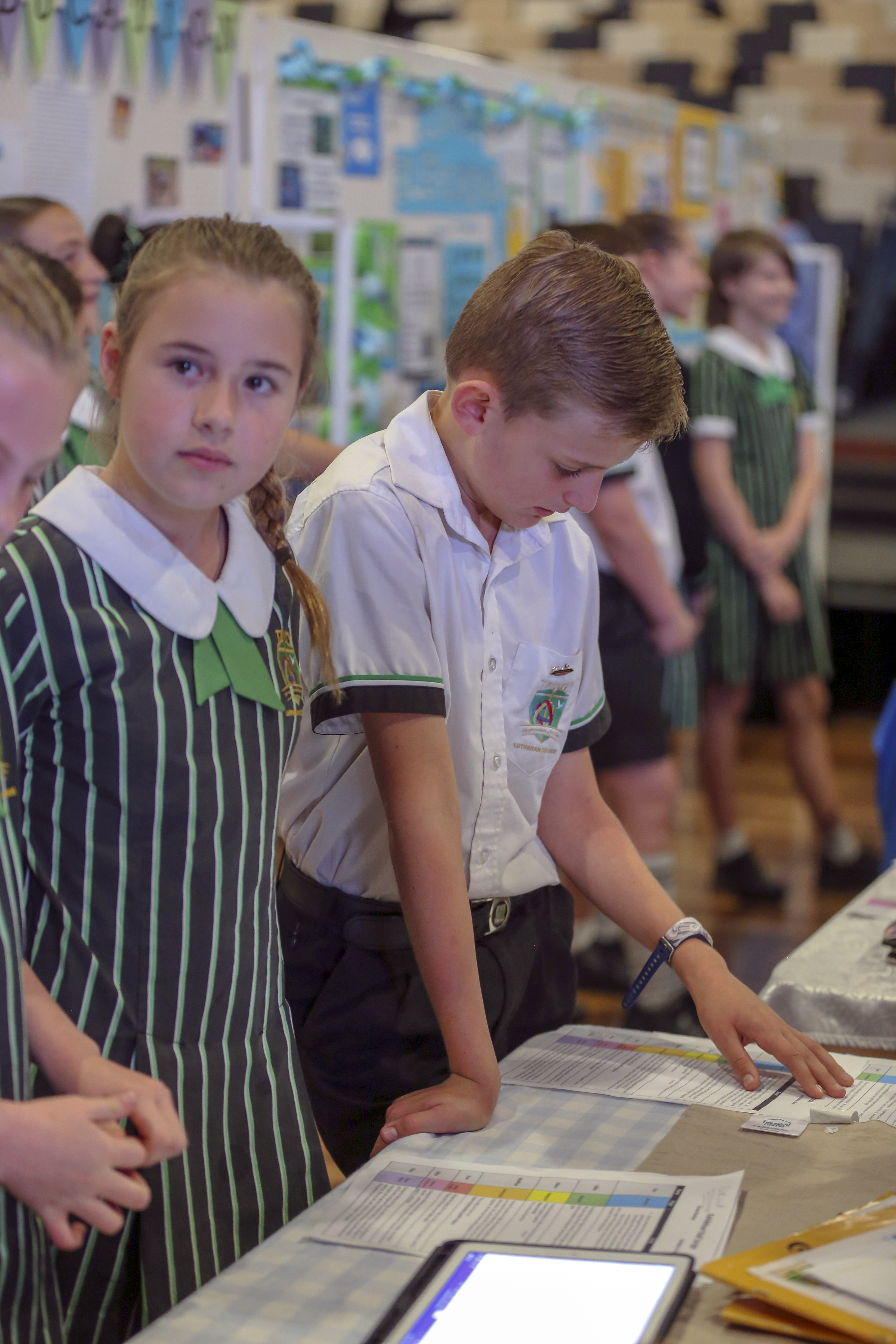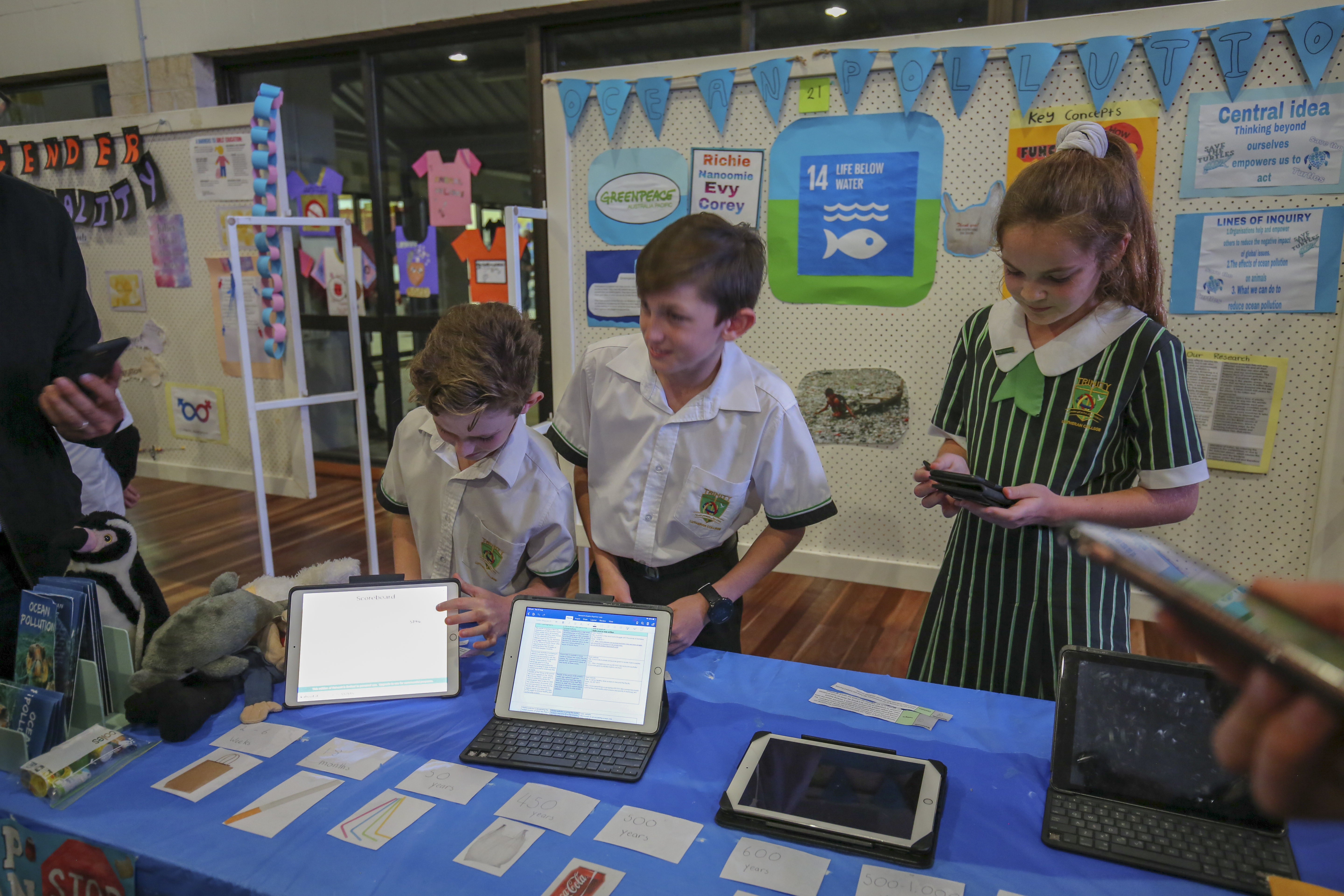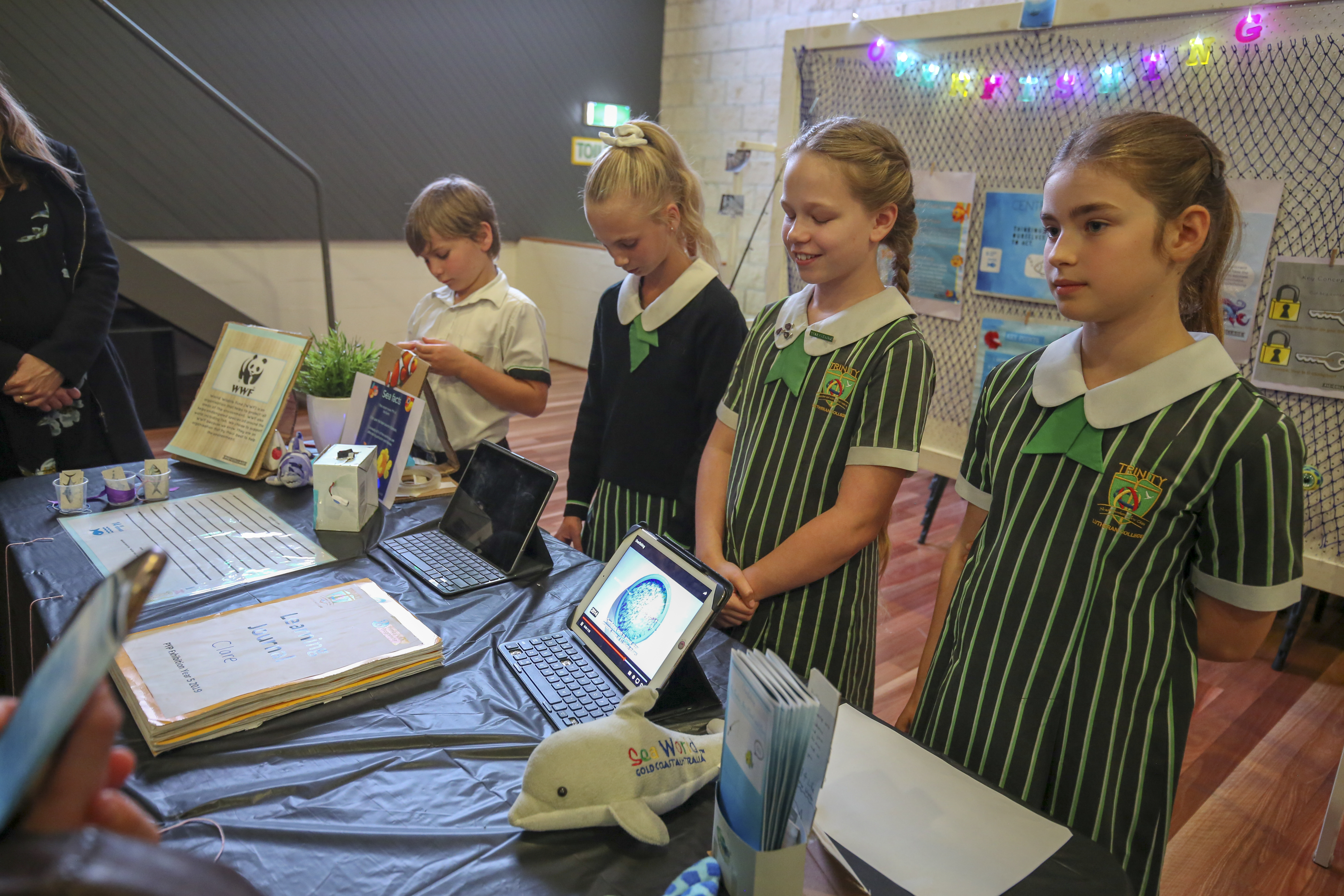 The PYP Exhibition night was an engaging celebration of our Year 5's learning. The students used a variety of modes of presentation to present their research. “We enjoyed creating the iMovie because it summed up our research.” Emmanuel Cathie quotes. These modes of presentation were used to share their learning journey and educate their family and friends on the night of Exhibition and promoted a worthy charity that connected with their global goal. Families voted for charities at the end of the evening and we will support a number of these charities through chapel donations this term and next term.. “We enjoyed working with our group and seeing our Exhibition presentations coming together through our Brochure and PowerPoint” states Clare Dooley.